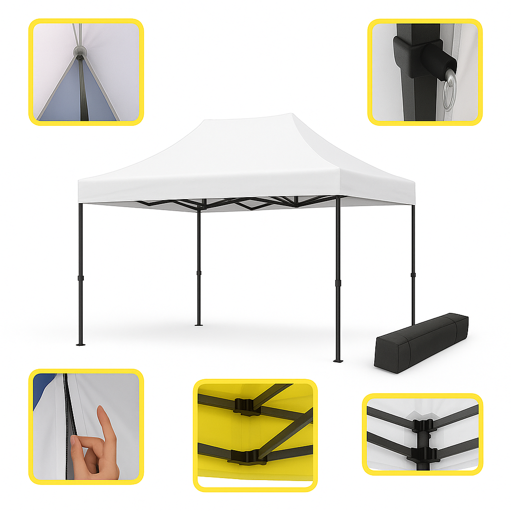 Le barnum 2x3m racing blanc offre un abri spacieux pour les marchés et expositions en extérieur il est à la fois pratique et élégant par sa petite taille. Sa structure en acier robuste assure une stabilité à toute épreuve, idéale pour les événements extérieurs. Sans parois latérales, il garantit une circulation fluide et une installation rapide sur tout type de terrain. Nous garantissons un service après-vente réactif et complet sur l’ensemble des pièces de nos barnums en acier.
