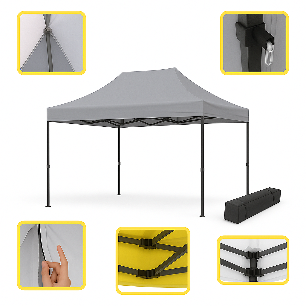 Le barnum gris racing 2x3m combine robustesse et facilité d’usage pour vos manifestations. Fabriqué en acier renforcé, il se déploie en un instant pour créer un espace abrité sans parois, idéal pour les petits stands professionnels, les marchés ou les activités sportives en plein air. Nous garantissons un service après-vente réactif et complet sur l’ensemble des pièces de nos barnums en acier.