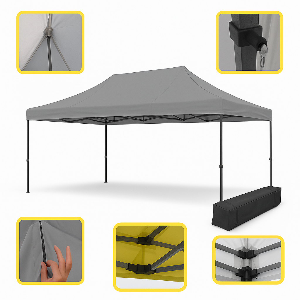 Le barnum 3x4.5m racing gris conçu en acier robuste est la solution idéale pour vos événements extérieurs. Simple à installer et élégant, il offre un espace ouvert sans parois, parfait pour les paddocks, les marchés ou les zones techniques de compétition. Nous garantissons un service après-vente réactif et complet sur l’ensemble des pièces de nos barnums en acier.