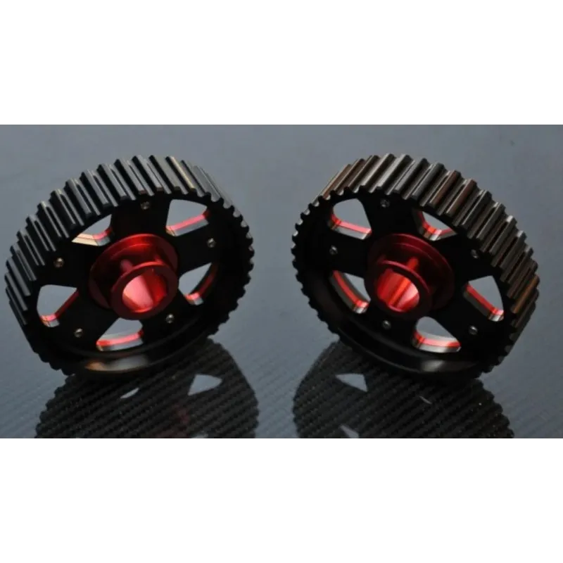 Kit 2X Poulies réglables pour arbre à cames type Racing, montage pour moteur Renault Clio 16v F7P. Fabriqués en aluminium T6 avec des pignons anodisés pour une résistance à l'usure accrue.